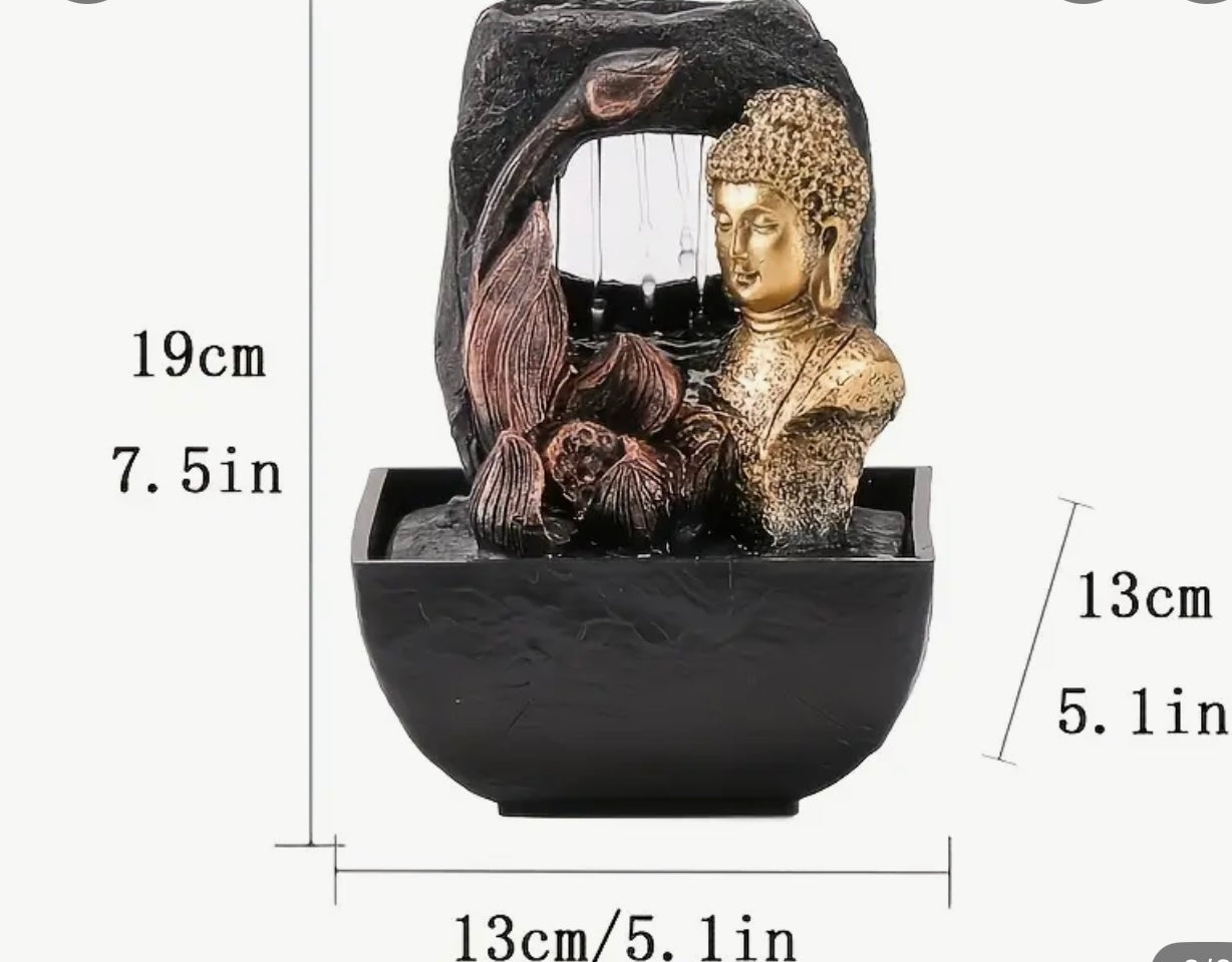 Resin Buddha statue for desktop fountain, waterfall zen style -USB powered.